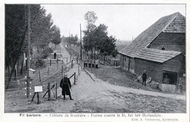 Vanaf 1914 verbleef Camiel van Raemdonck, burgemeester van Beveren, bij familie op de Muggenhoek in Kieldrecht. De Muggenhoek was gelegen aan de grens met Nederland en werd afgezet door een grenswacht en een elektrische schrikdraad, beter bekend als de Dodendraad. Collectie Guido Hullebroeck